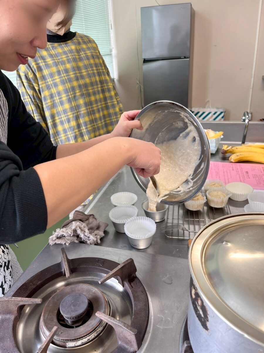 今回の企画として、米粉のバナナ蒸しパン作りをしました。